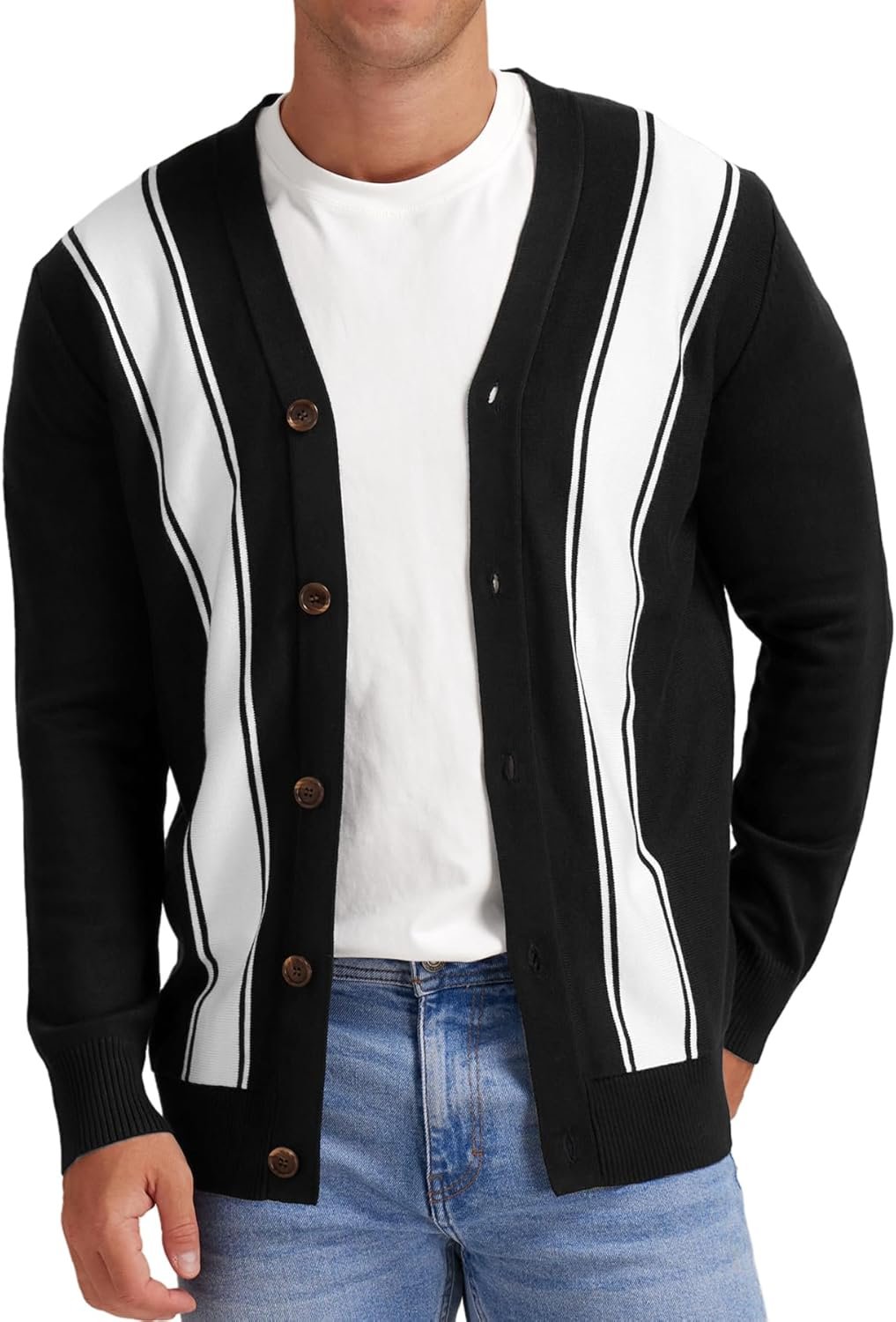 - Wear this striped cardigan alone as a long sleeve Sweater, pair it with a t-shirt as a knit outerwear, or wear it under a overcoat as an layering, randomly match a pair of jeans or chinos, suit for spring, autumn and winter wear.